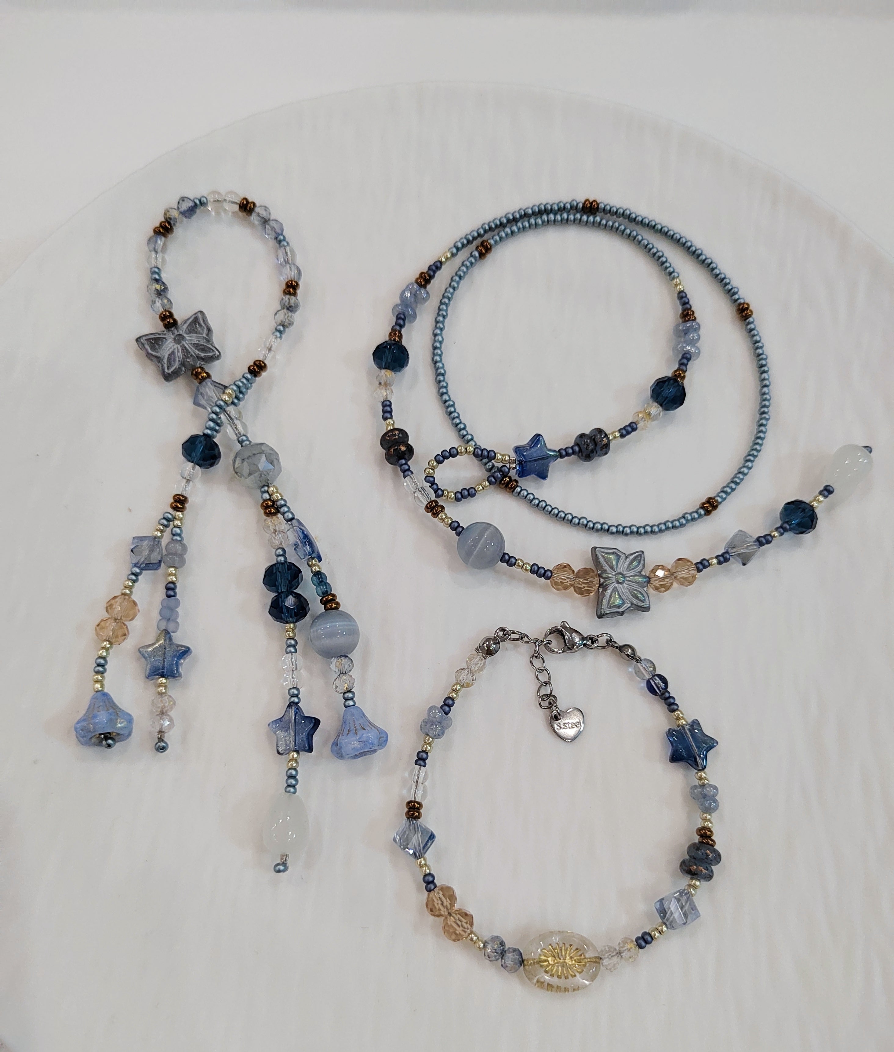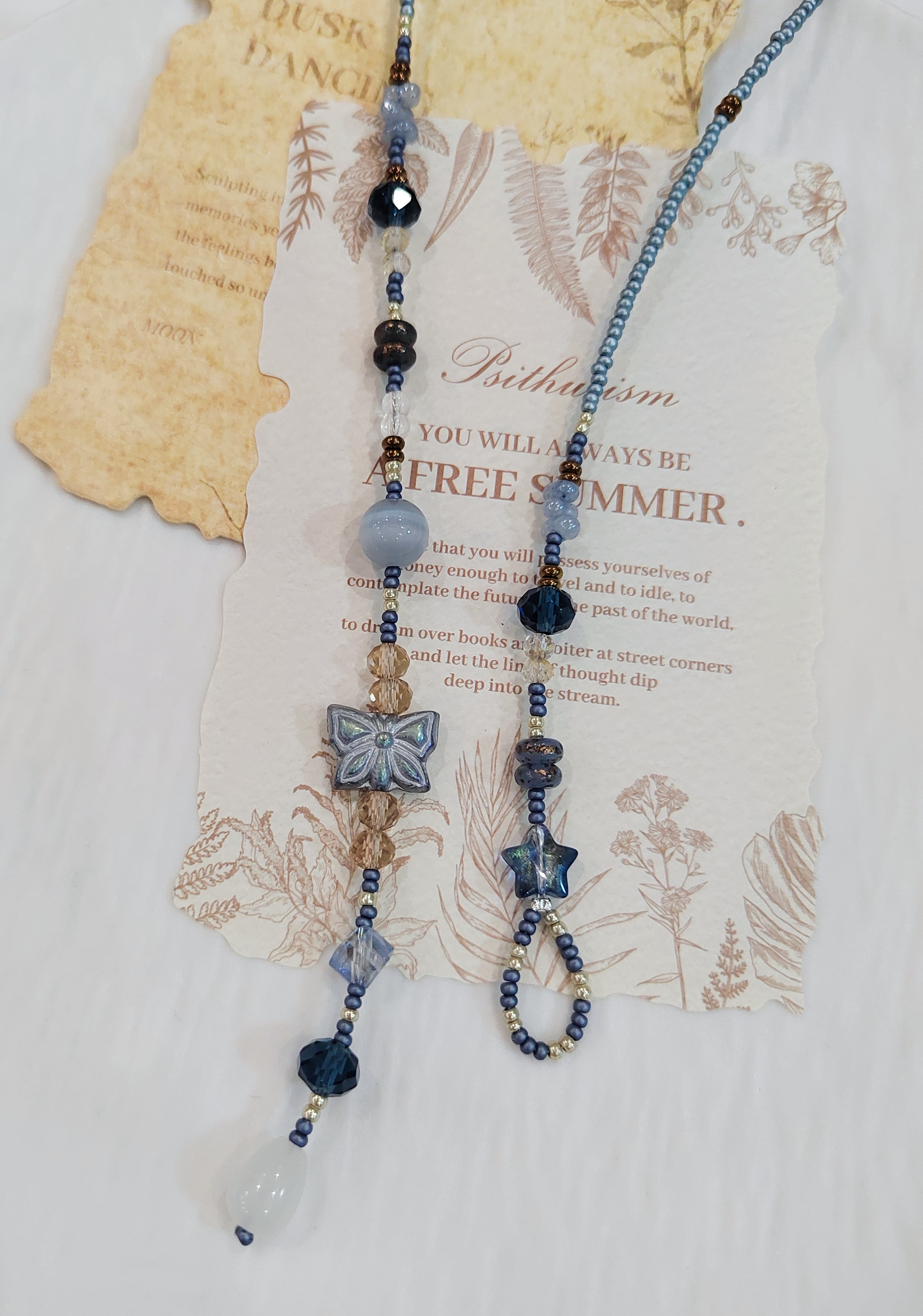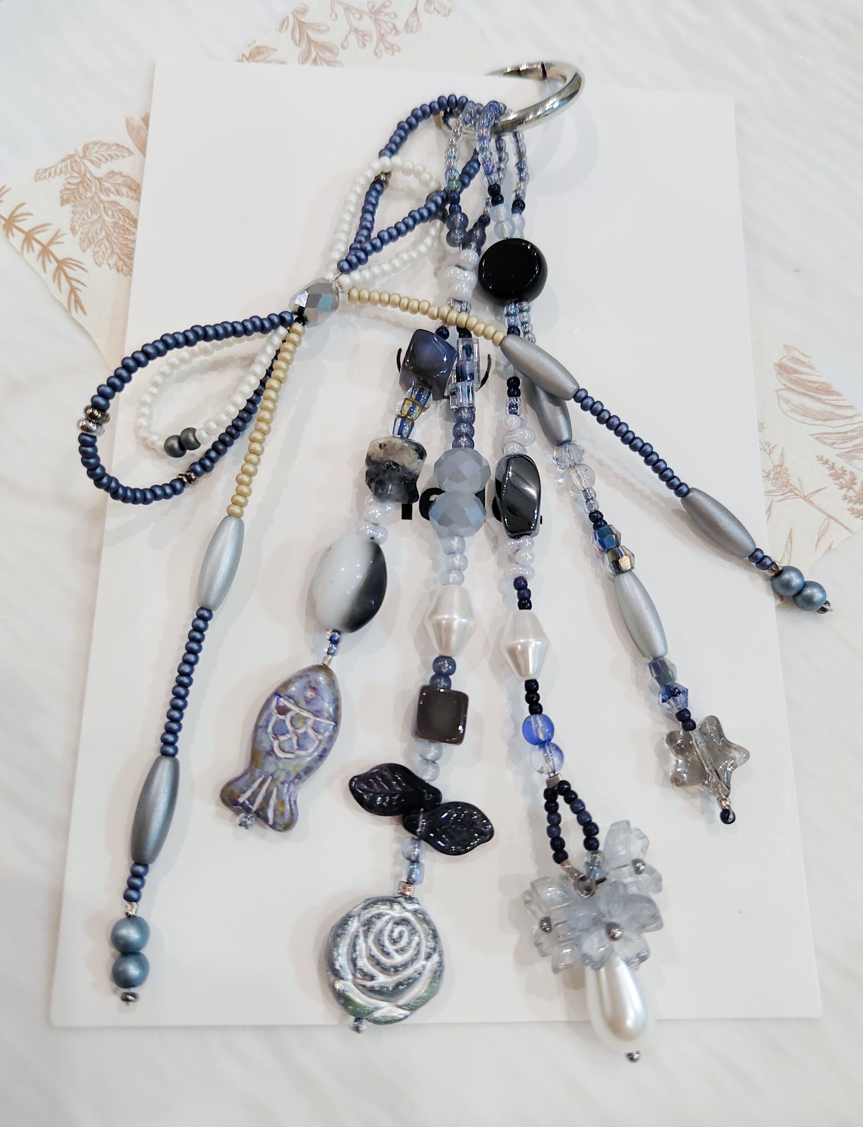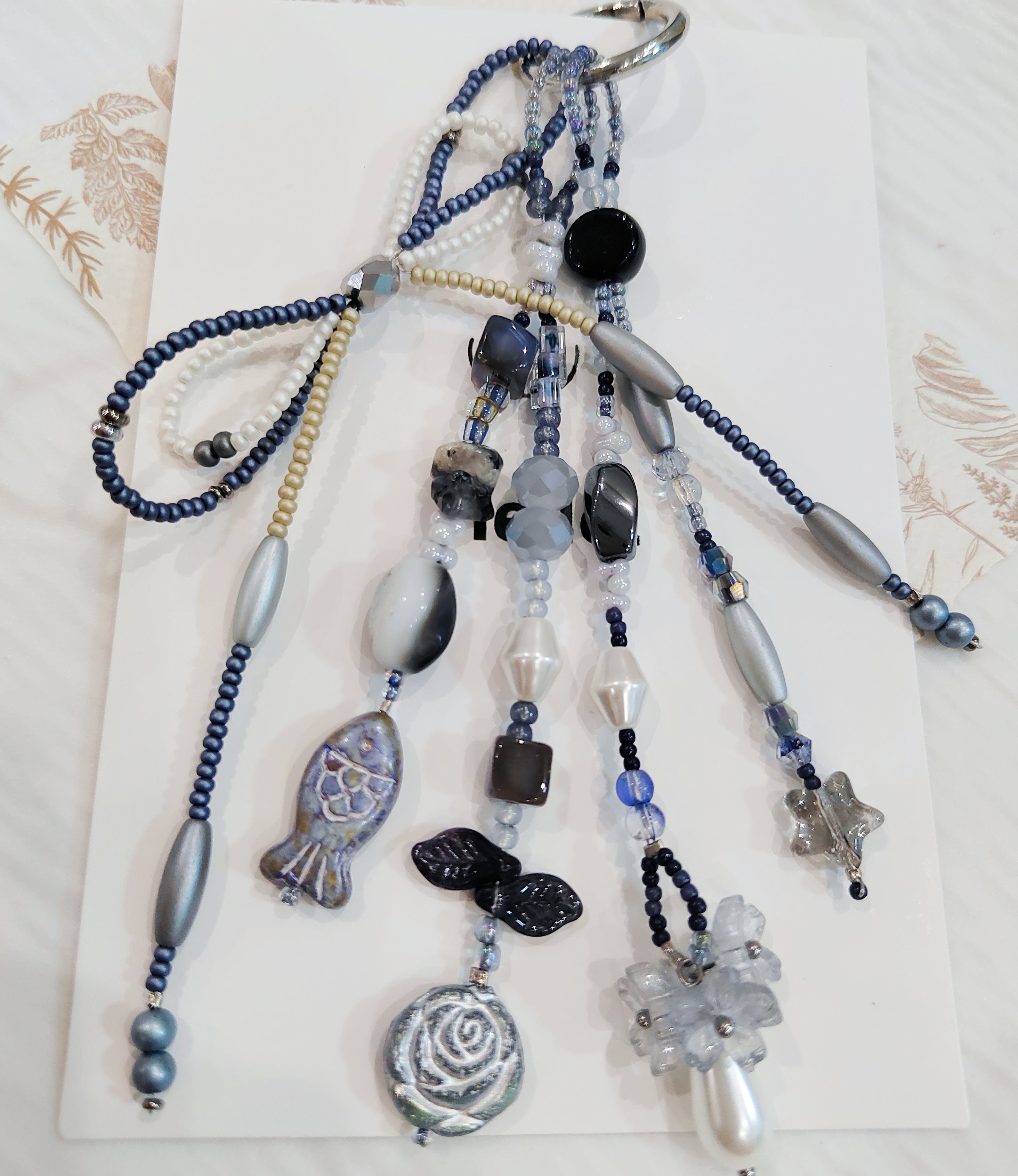 Handmade Bead Bag Charms Unique Blue Artisanal Accessory Dangle Ornaments for Holiday Home Rustic Natural Jewelry$8.80