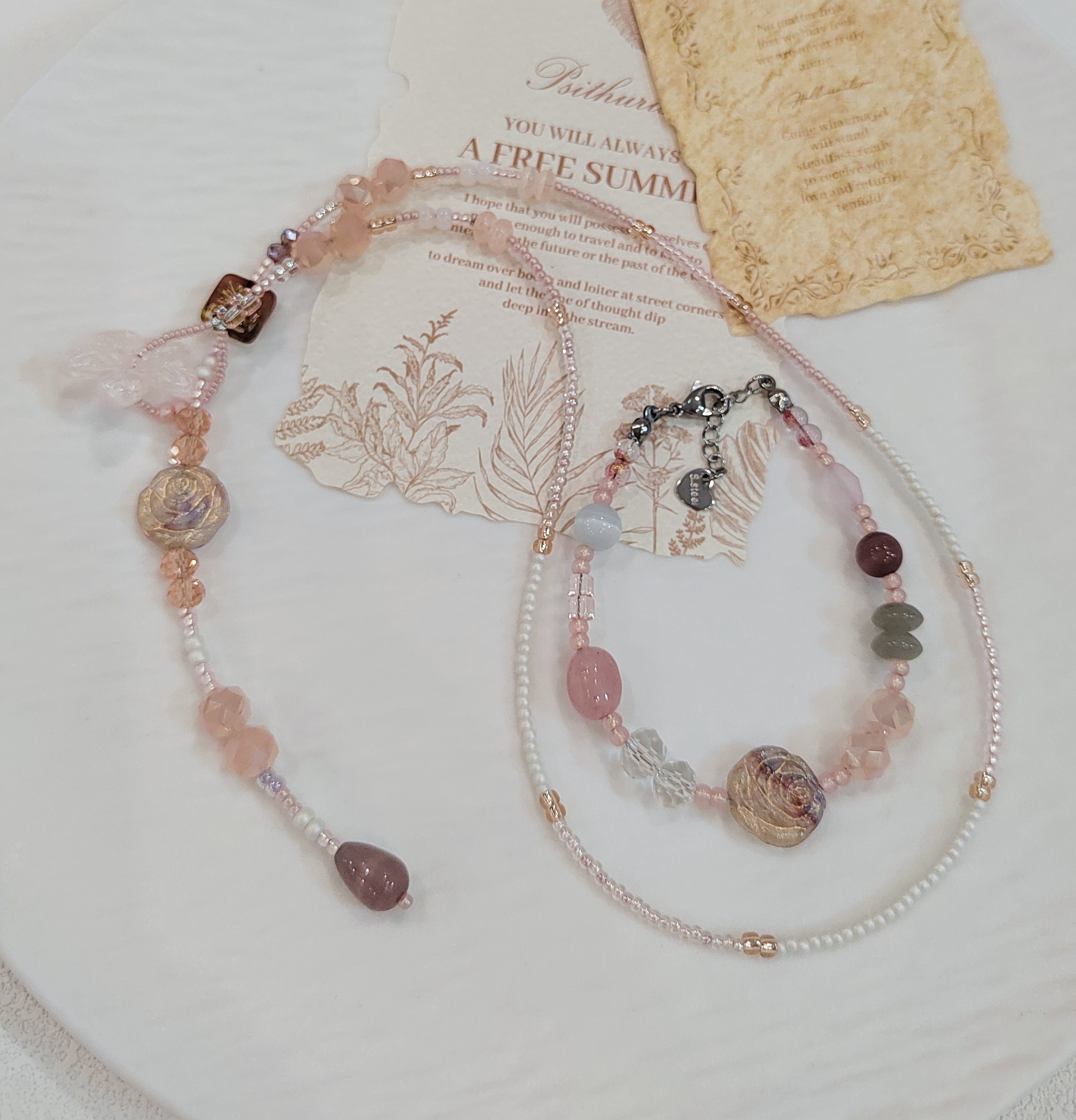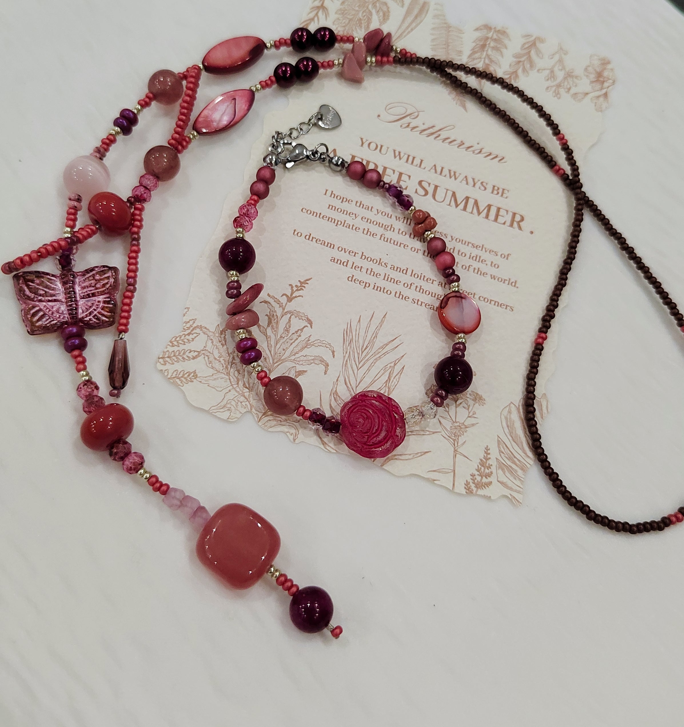 Handmade Glass Bead Bag Charms Unique Pink Green Bead Artisanal Accessory Dangle Ornaments for Holiday Home$8.80