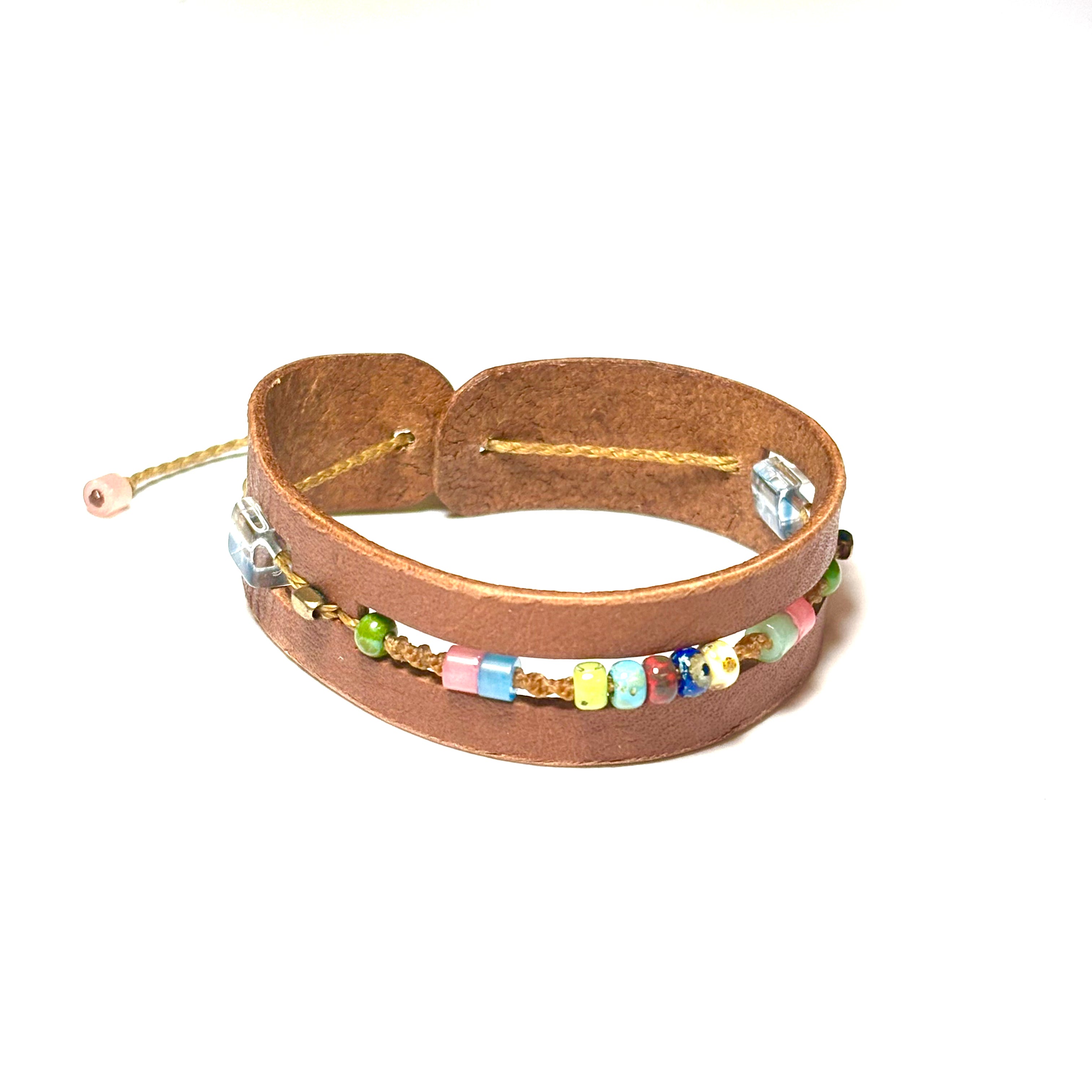 Add bold character to your everyday look with this handmade leather wrap bracelet, featuring colorful accent beads and a durable, adjustable fit. Each bracelet is thoughtfully crafted with natural leather and unique bead arrangements — no two are exactly the same.