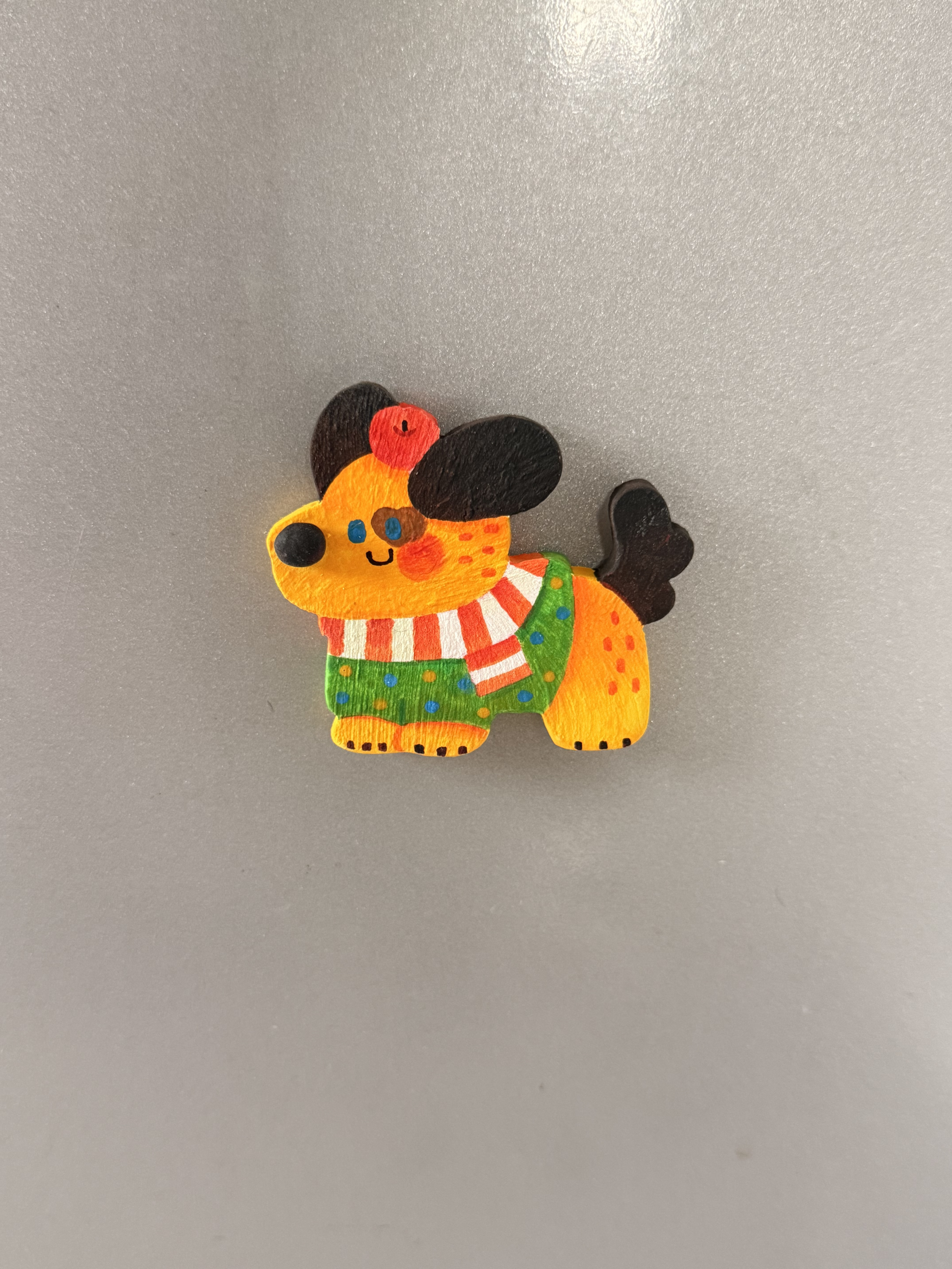 Dog-Shaped Design:This fridge magnet features a cute dog shape paired with a red striped scarf, making it look incredibly charming and visually appealing.
