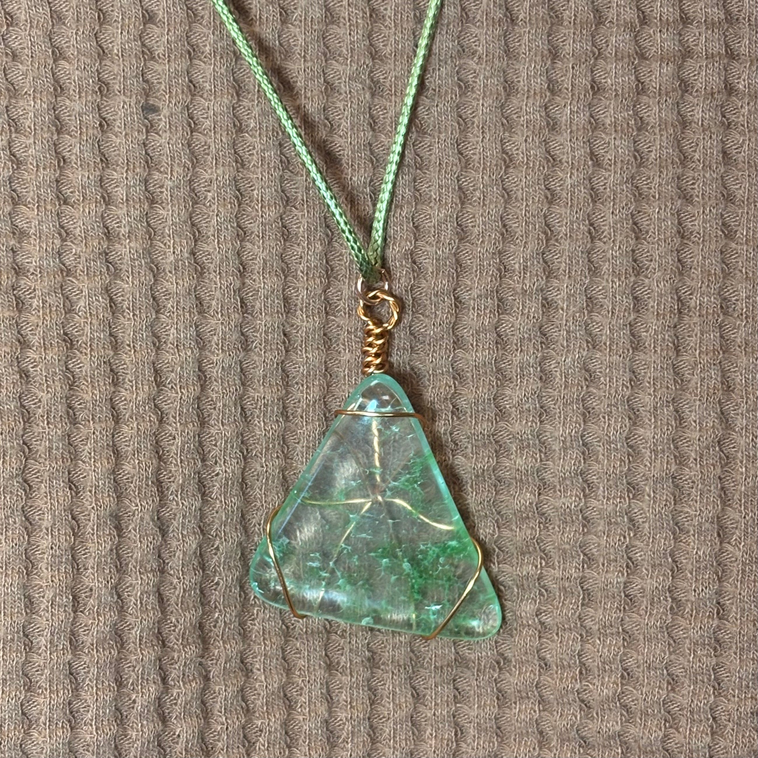 Green Glass Triangle Pendant Necklace (Wire-Wrapped) Triangle