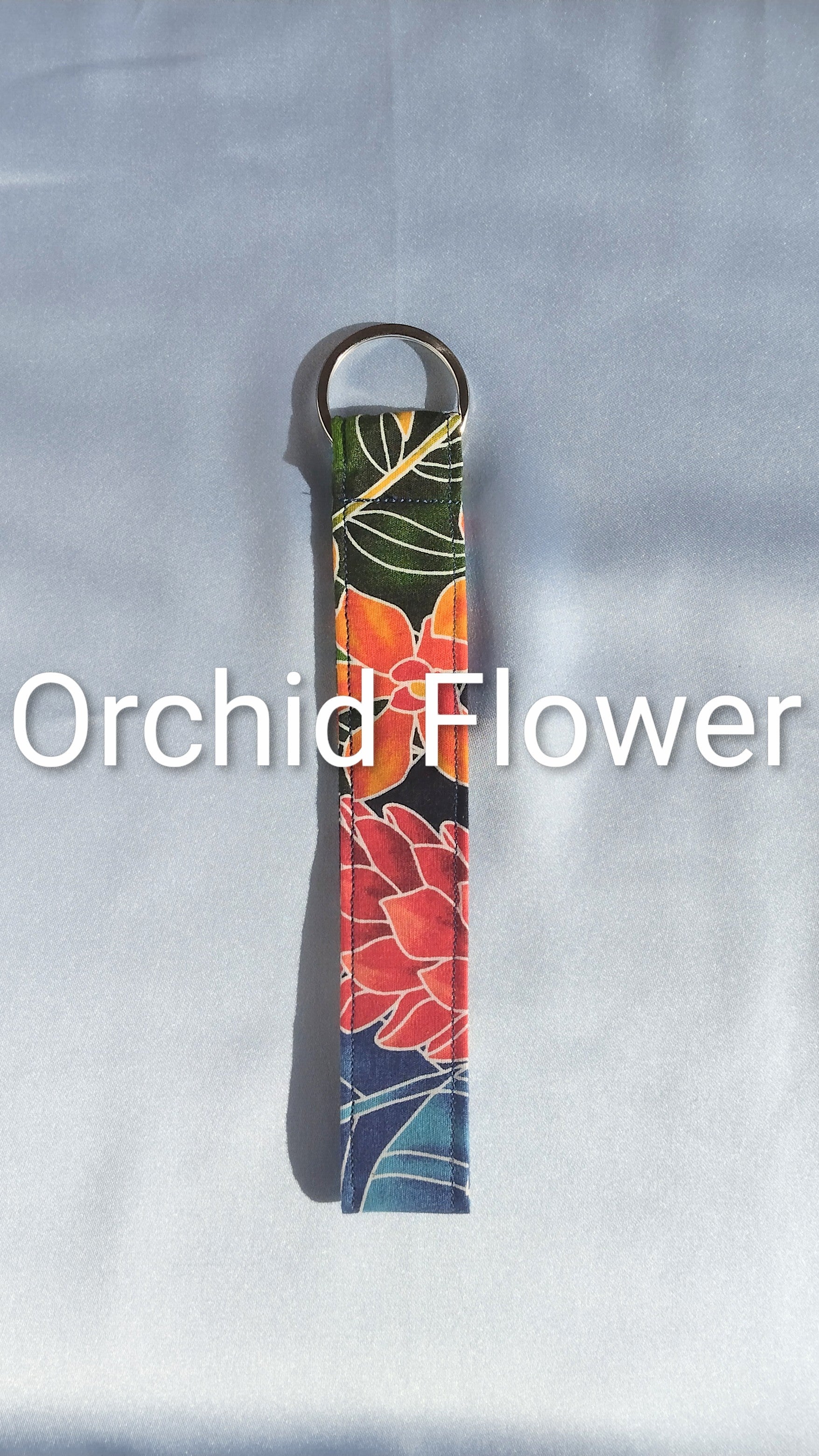Hawaiian Orchid print fabric key chain.