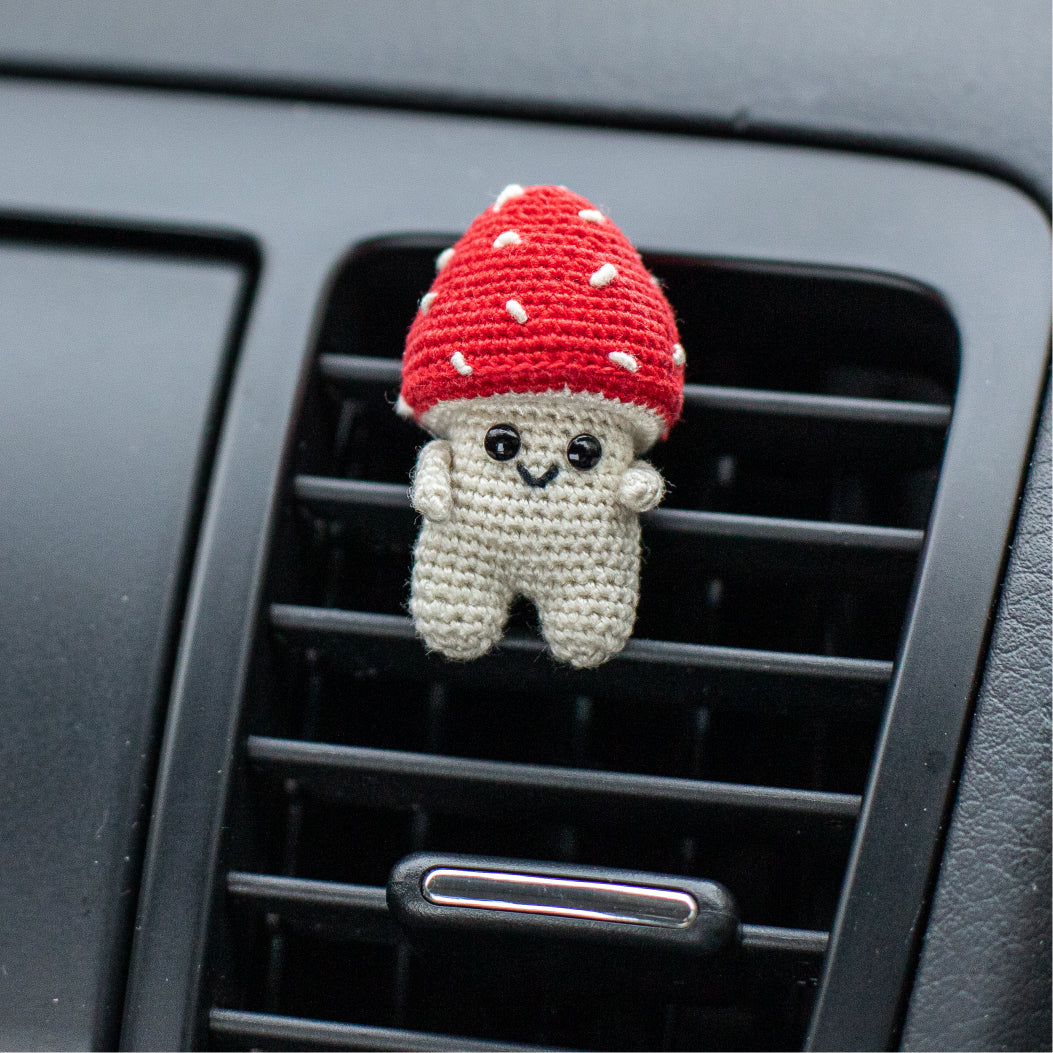 Car Air Vent Clip Crochet mushroom, amanita, vehicle air fresheners. Gift for car owner.