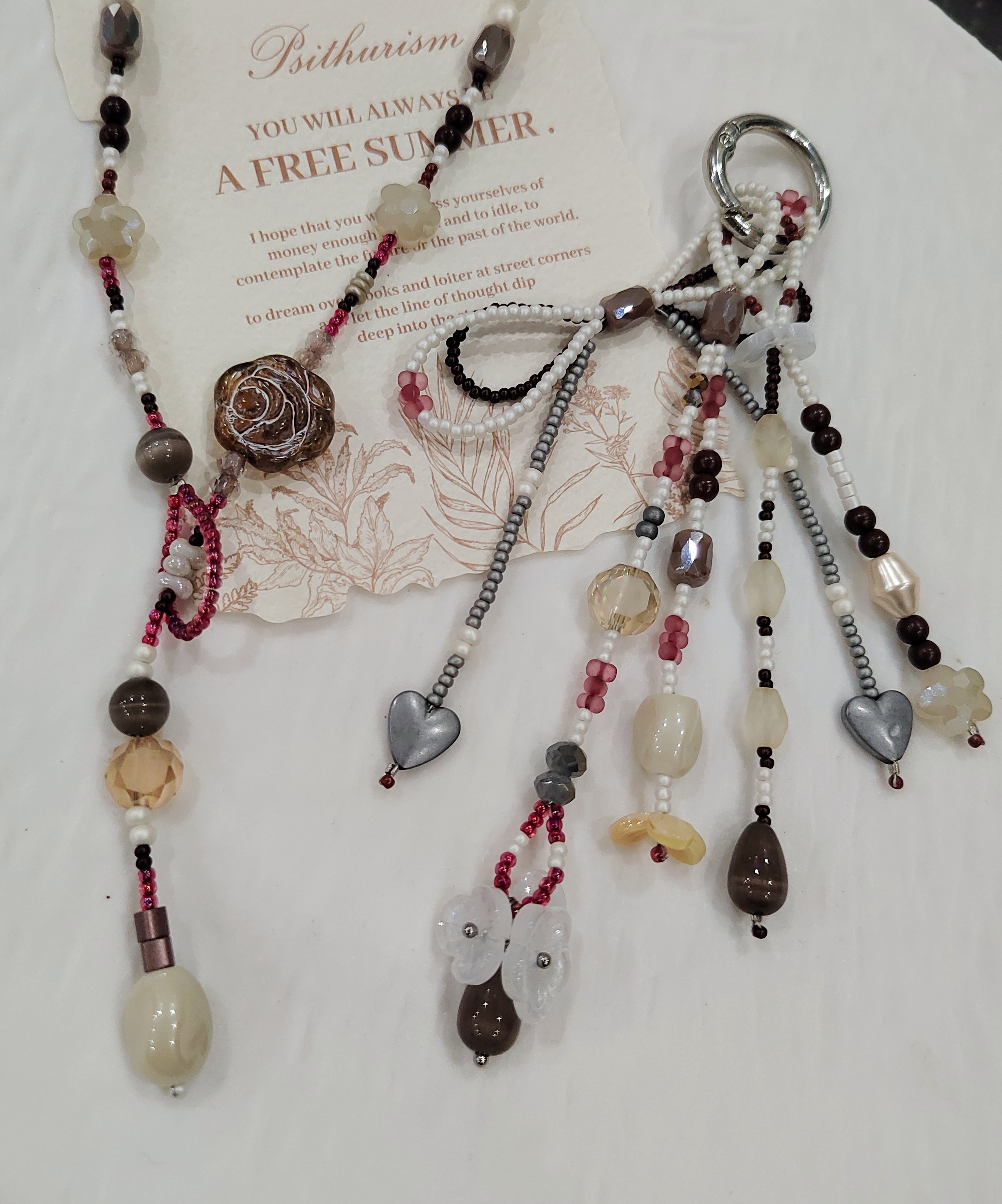Handmade Glass Bead Bag Charms Unique Pink Green Bead Artisanal Accessory Dangle Ornaments for Holiday Home$8.80